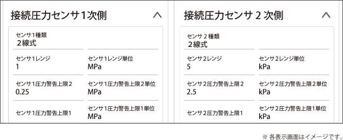 圧力遠隔監視専用ページ「圧力監視.NET」 画面例