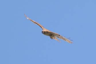 ノスリは翼を広げたまま空中にとどまり、餌であるネズミやモグラを探します。