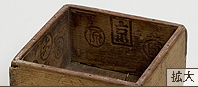 京都、東町奉行の印が押された枡。枡の内側には張りものをして容積をごまかす事が出来ないように焼印が押されている。