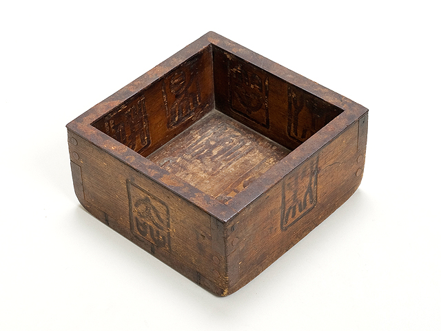 備前国(現在の岡山県)で使われていた枡。内側に焼印が押されている事により、張りものなどをして容積をごまかす事が出来ないように造られている。