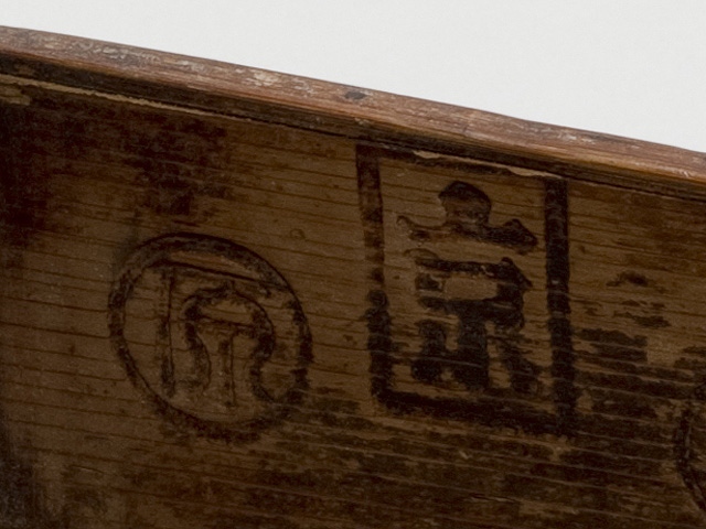 堺県で使われていた枡。堺県藤本製という焼印が押されている。